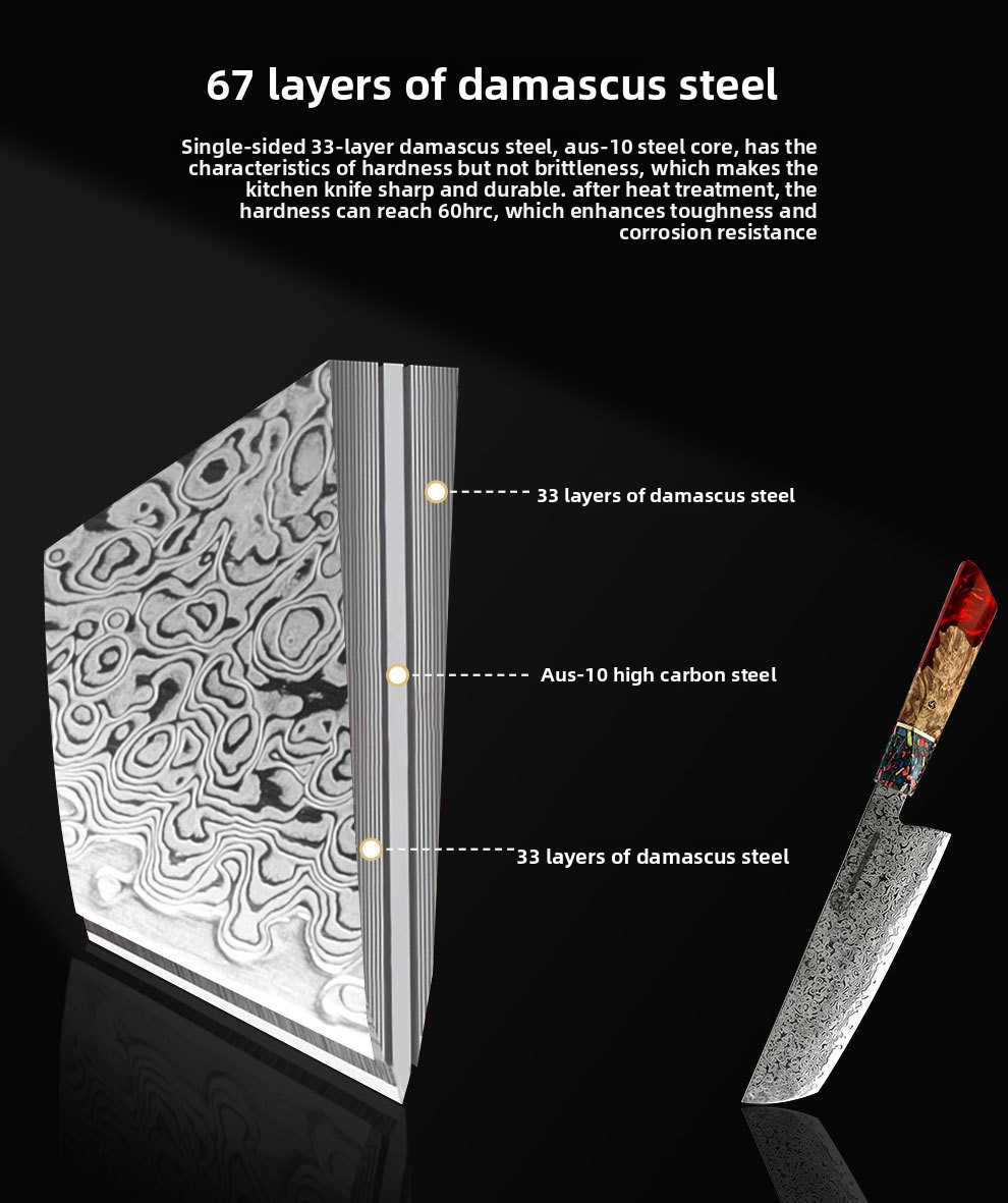 Damascus Steel - Premium AUS10 steel with distinctive layered pattern for superior durability and corrosion